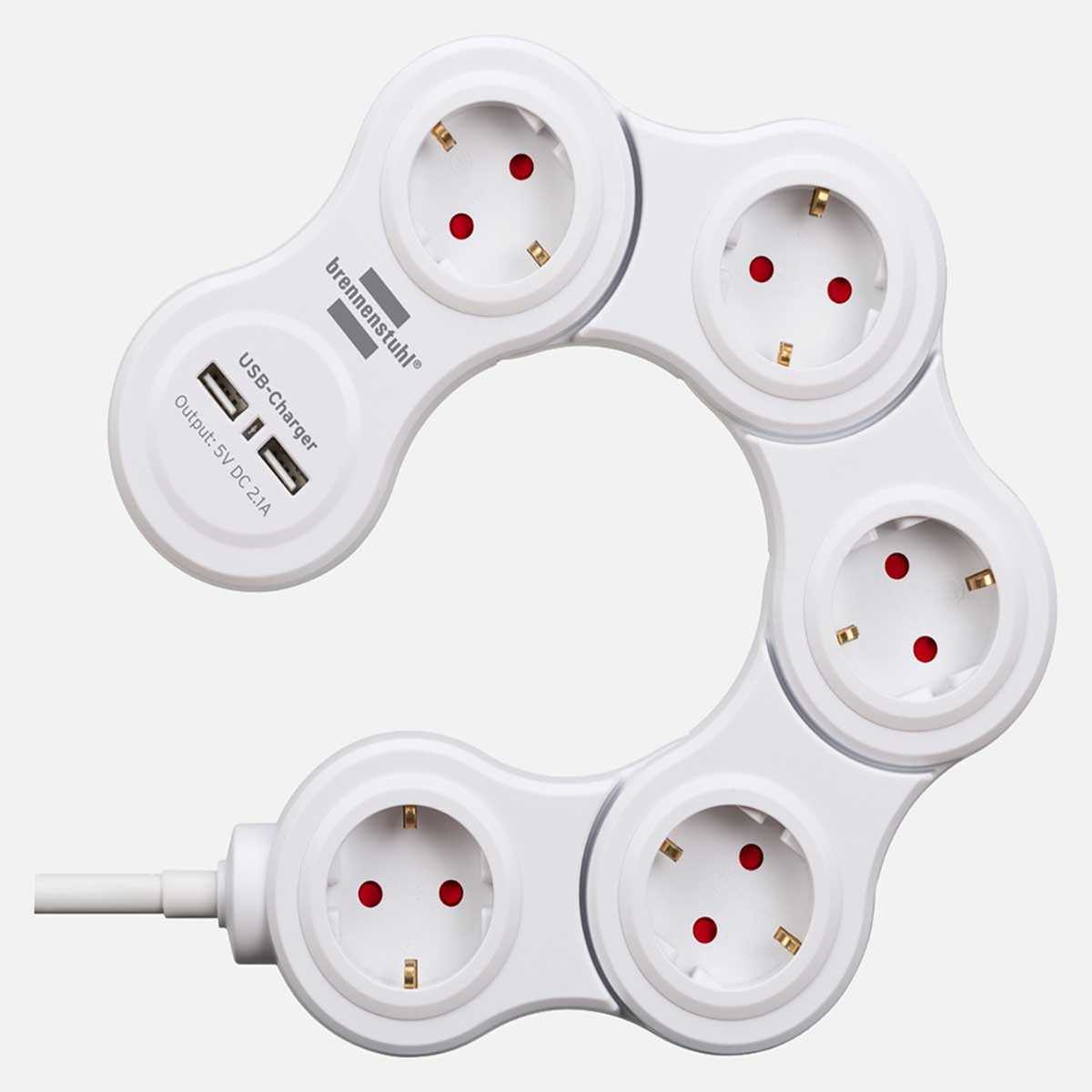 2 Usb şarj soketi, 1,4 m kablo uzunluğu (H05VV-F3G1.5) ve yanlışlıkla temasa karşı artırılmış koruma ile esnek 5 yollu anahtarlı uzatma kablosu