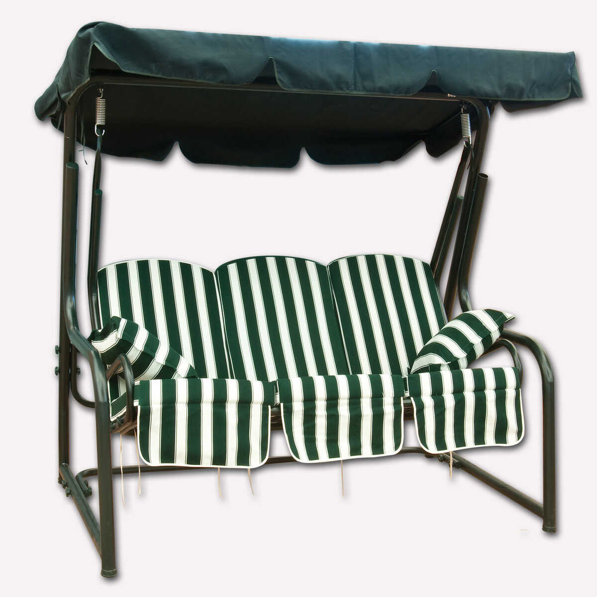 3 kişilik boyutuyla rahat kullanım imkanı sunan salıncağın minderleri, 3 parçalı özel dizayn edilmiş ve her bir parçası kendinden saçaklı, gizli fermuarlıdır. Su geçirmez oxford polyesterden dikilen minderler salıncağa rahat tutturabilmeniz için bağcıklıdır.